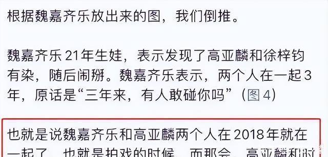 离婚后,高亚麟与魏嘉开始关系,后者比他小约20岁。2020年,他们的孩子出生,这直接打破了他之前的丁克承诺。关系持续到2024年5月8日,魏嘉在网上发布聊天记录和转账截图,指出高亚麟在孩子出生仅两个月时与徐梓钧有经济往来,转账金额包括28888元和38888元。魏嘉还提到高亚麟在孕期实施家暴,包括掐脖子和扇耳光。次日,魏嘉公布抚养协议,显示深圳一处房产登记在她名下,但所有权归孩子。5月10日,徐梓钧发文否认与高亚麟超出朋友关系,并要求他公开道歉。高亚麟未作回应,这些事件迅速在网络发酵,影响了他的公众形象。
